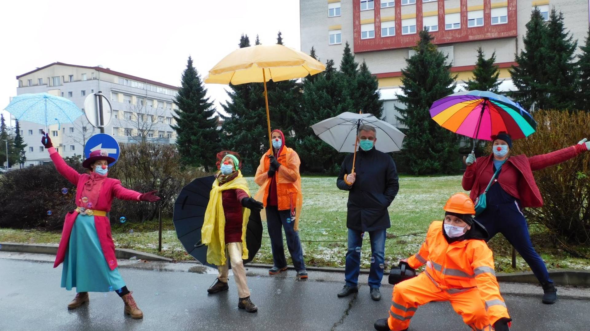 Kvintet Aeternum in Rdeči noski so razveselili bolnike in zaposlene, ki se borijo predvsem s koronavirusom. Bolnikom so tako krepili pogum, zaposlenim pa so se s svojim nastopom zahvalili.