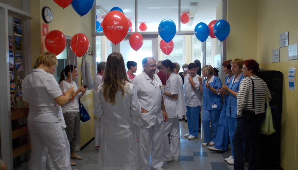 Danes so Rdeči noski, klovni zdravniki in Lek, član skupine Sandoz, slavnostno odprli začetek prvih rednih obiskov klovnov zdravnikov na otroškem oddelku Splošne bolnišnice Murska Sobota. Prvi obisk so Rdeči noski izvedli že danes zjutraj in spravili v dobro voljo ves otroški oddelek.