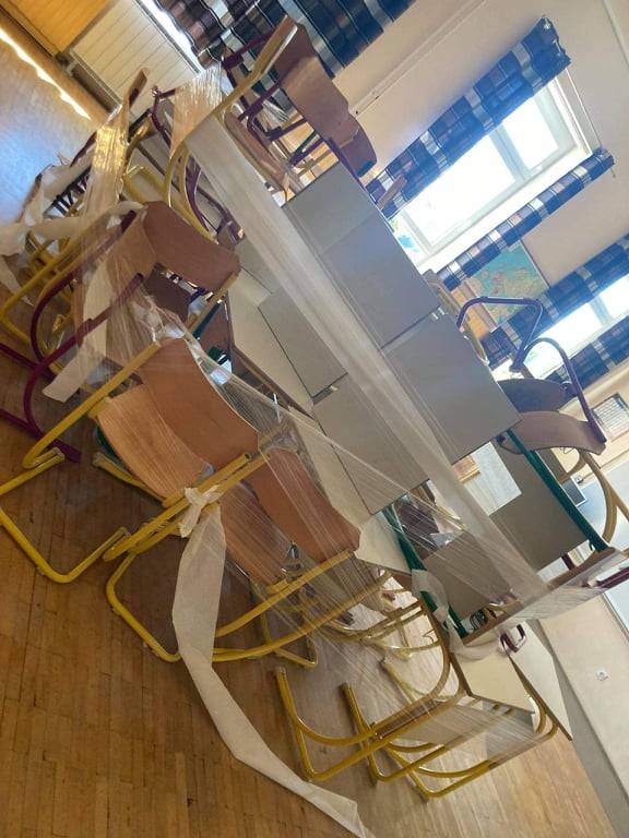 Presenečenje pa se ni končalo le pri avtomobilu. Na podoben način so jo presenetili tudi v učilnici, kjer jo je pričakal kup stolov ovitih s folijo, ki je učencem predstavljal večno prijateljstvo.
