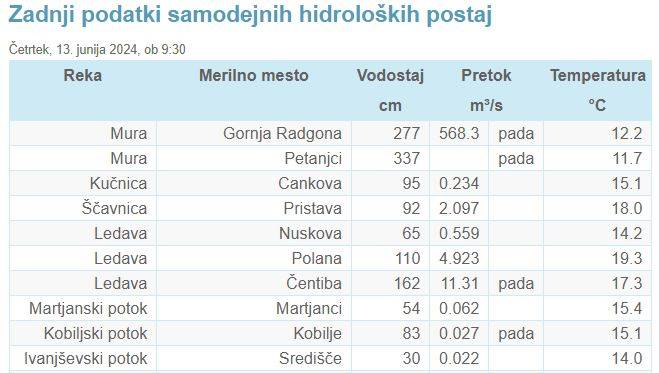 V soboto bodo vse reke upadale, prevladovala bo srednja vodnatost rek.