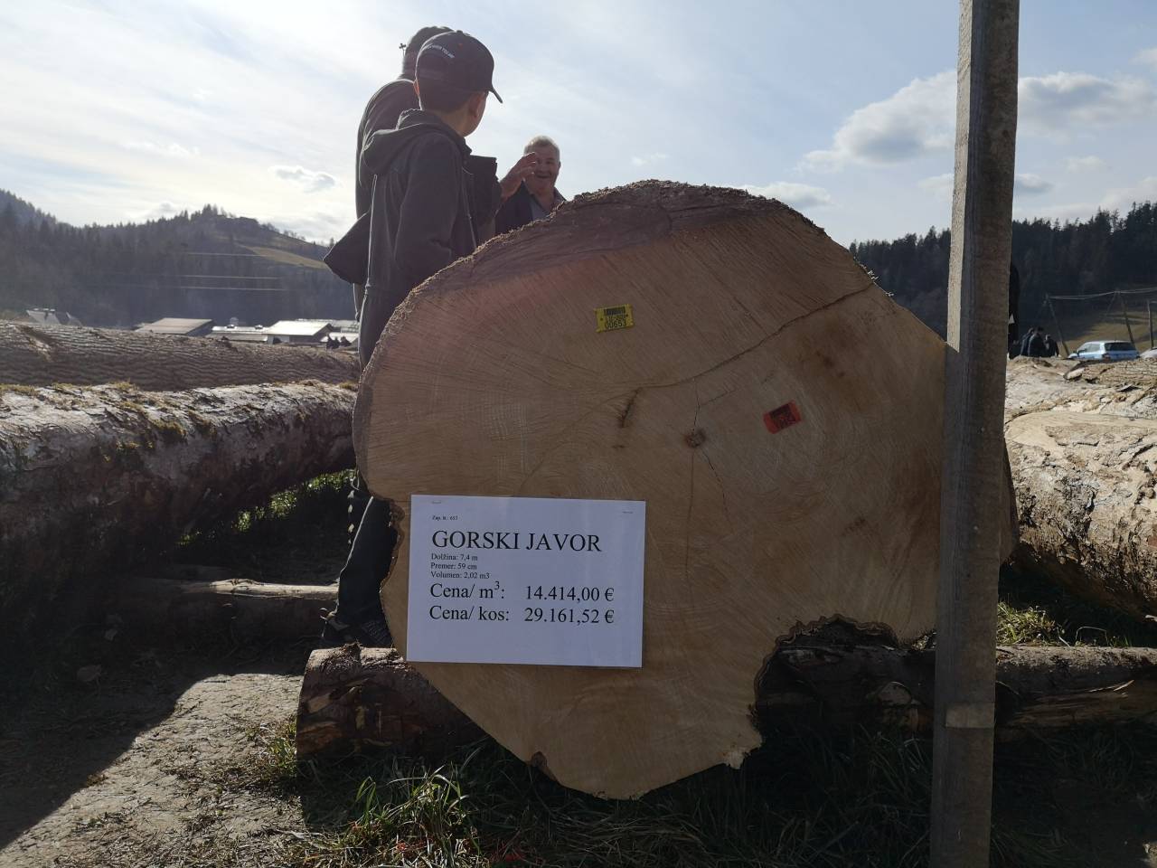 Kupec iz Nemčije je za dobrih sto let star hlod, posekan v snežniških gozdovih, ponudil 29.161,52 evra, ponujeni hlod pa je po kubičnem metru dosegel 14.414 evrov. »To so absolutni rekordi,« je za STA dejal Jeromel.