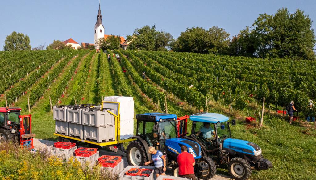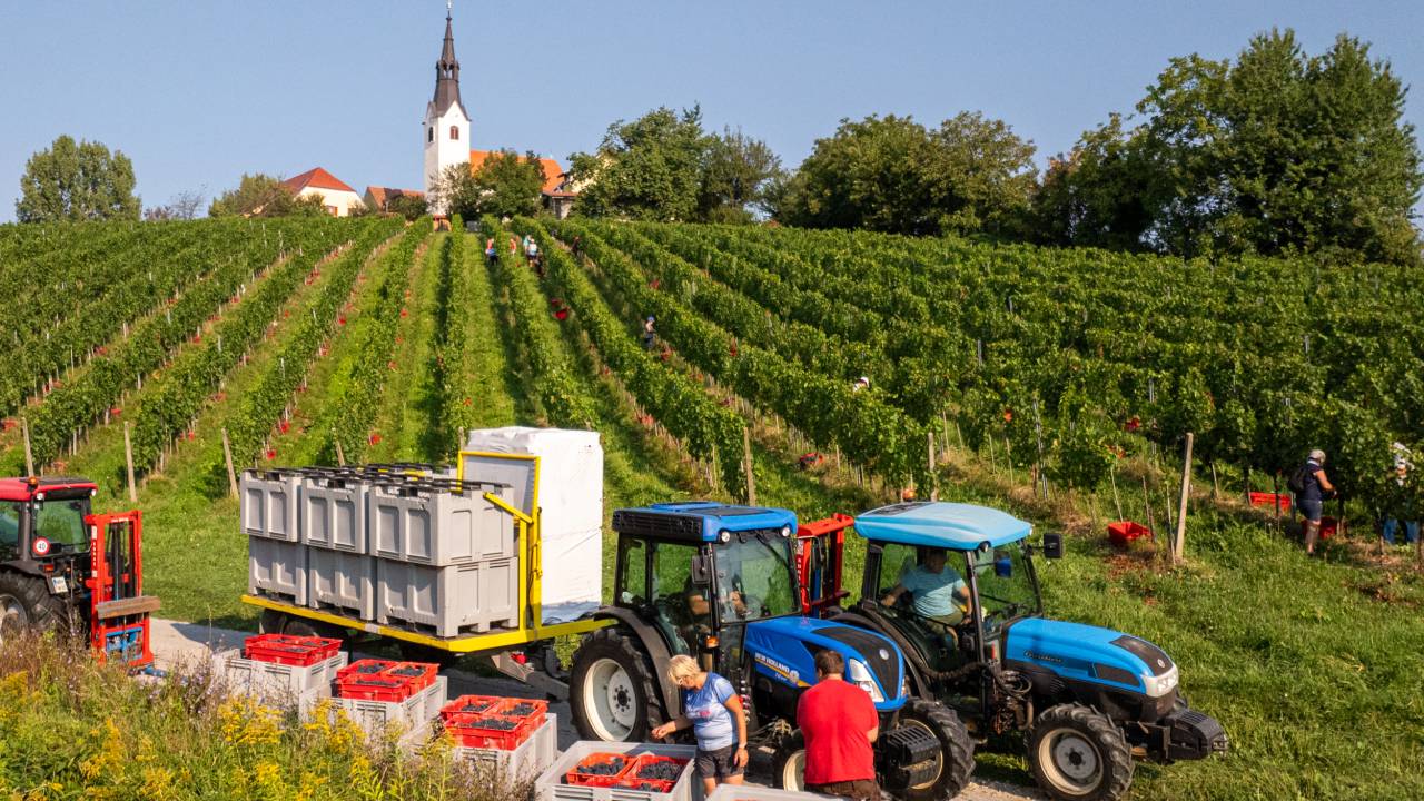Prvi dan trgatve je bilo v vinogradih 31 obiralcev, ki so pobrali osem ton grozdja.