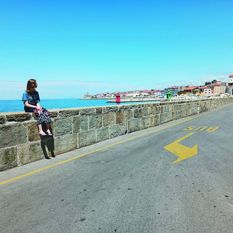 Z avtobusom me skupina pobere v Ljubljani, sem edina iz glavnega mesta, drugi prihajajo iz Prekmurja. Na avtobusu me pričaka kup razposajenih otrok in njihove mame. Vsi veseli dopusta na obali in novih dogodivščin. Lepo me sprejmejo, čeprav začutim rahlo distanco, vseeno sem zanje tujka, pa še »civil«. Tako nas od vekomaj, belce, kličejo naši romski državljani.