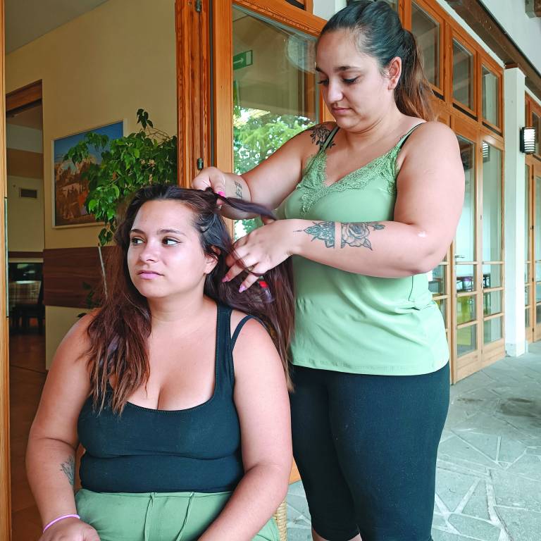Tudi gospe iz moje počitniške družbe na zunaj, razen po rahlo temnejši koži, v ničemer niso drugačne od mene. Urejene, moderno oblečene, polovica ima lase tako kot »civilke« pobarvane s svetlejšo barvo.