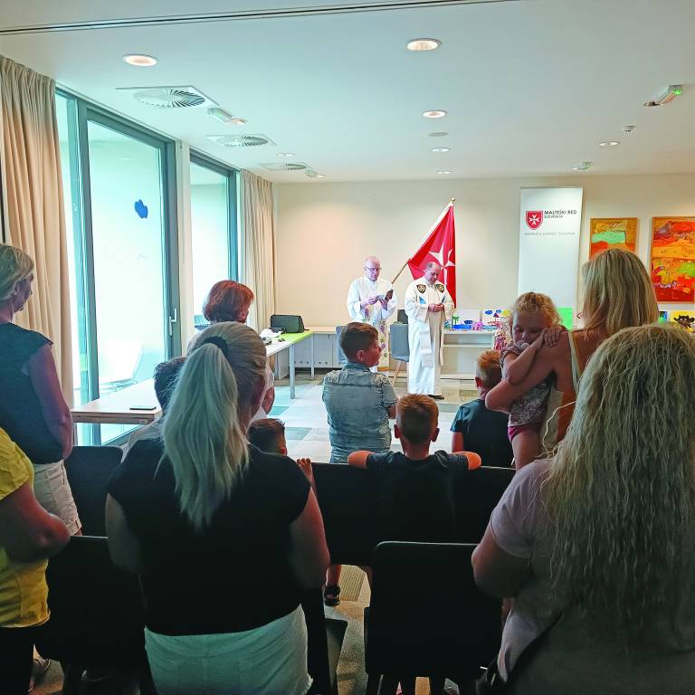 Ob petih popoldne se dobimo v improvizirani kapeli, vsi smo lepo oblečeni, za k maši. Duhovnik Milan Pregelj, ki je tudi vojaški kaplan, daruje mašo, sodelujoči odpojejo nekaj cerkvenih pesmi, pozdravi nas Roman Vučajnk, vitez malteškega reda in predsednik humanitarne organizacije pod pokroviteljstvom Katoliške cerkve, društva Malteška pomoč Sloveniji.