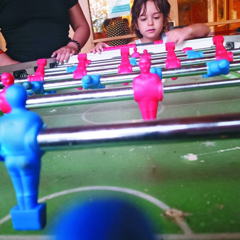 Vmes s Sonjo pripraviva delavnice, izdelujemo nakit iz pisanih korald, rišemo, ustvarjamo, igramo namizni nogomet in tudi veliko plešemo. Slednje me najbolj preseneti. Naši Romi, sploh prekmurski so že leta tako asimilirani, vključeni v okolico in v naš način življenja, da se njihova vas na zunaj po ničemer ne razlikuje od drugih prekmurskih vasi.