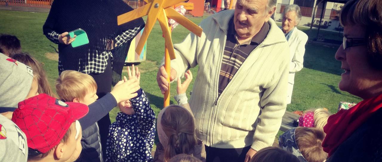 Otroci iz vrtca Plavček na Tišini so včeraj simbolno prejeli Dosorjevo vetrnico, s katero so odprli teden igranja in medgeneracijskega druženja s stanovalci Dosorja.