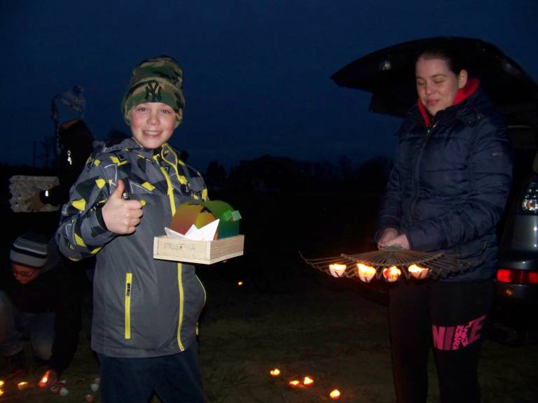 Ko se je stemnilo, se je na obrežju reke Ščavnice pri Pristavi zbralo veliko članov društva in ostalih vaščanov – predvsem so prišli najmlajši s svojimi starši.