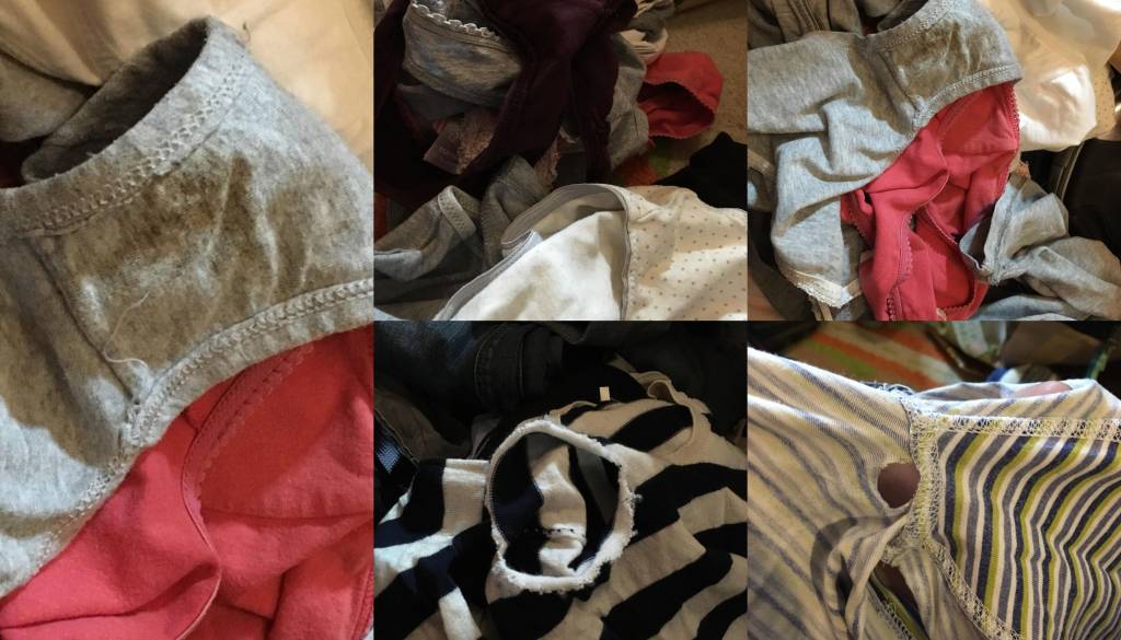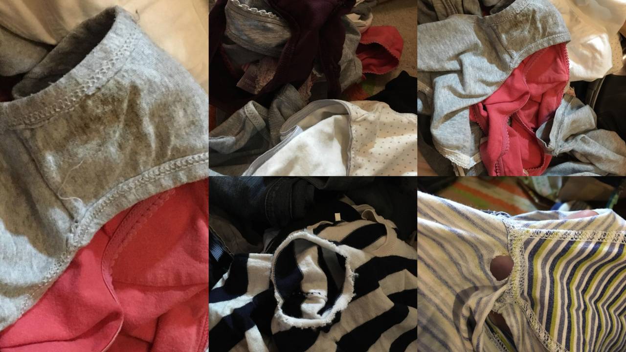 Prostovoljci Humanitarčka so tako naleteli na luknjasta in uničena oblačila, med drugim tudi na umazane spodnje hlače.