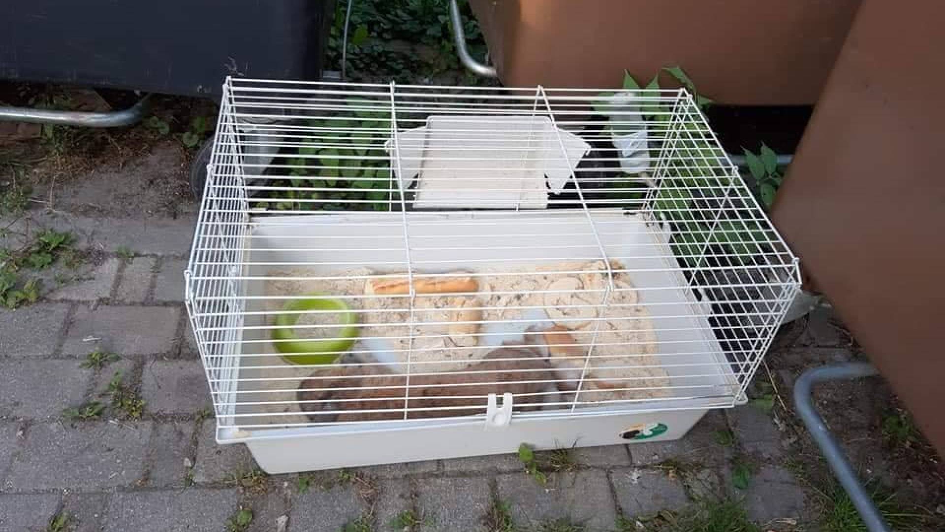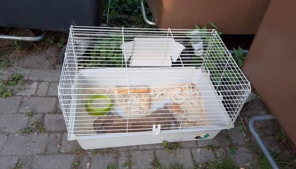 V smetnjaku je skupaj s kletko in vidno neprimerno hrano ležal poginul kunec.