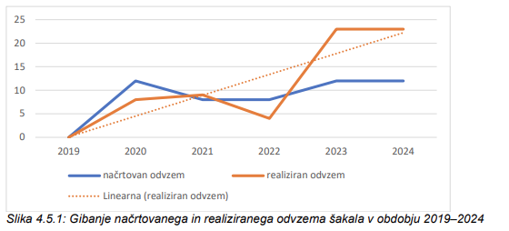 V letih 2025 in 2026 načrtujejo odstrel skupno 150 šakalov. Načrta sicer ni treba dosegati, presega pa se ga lahko za 50 odstotkov.