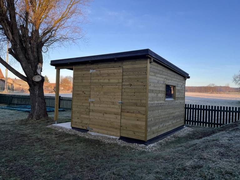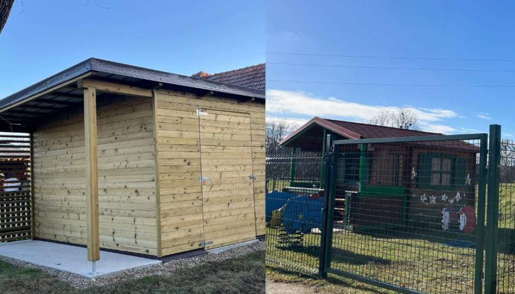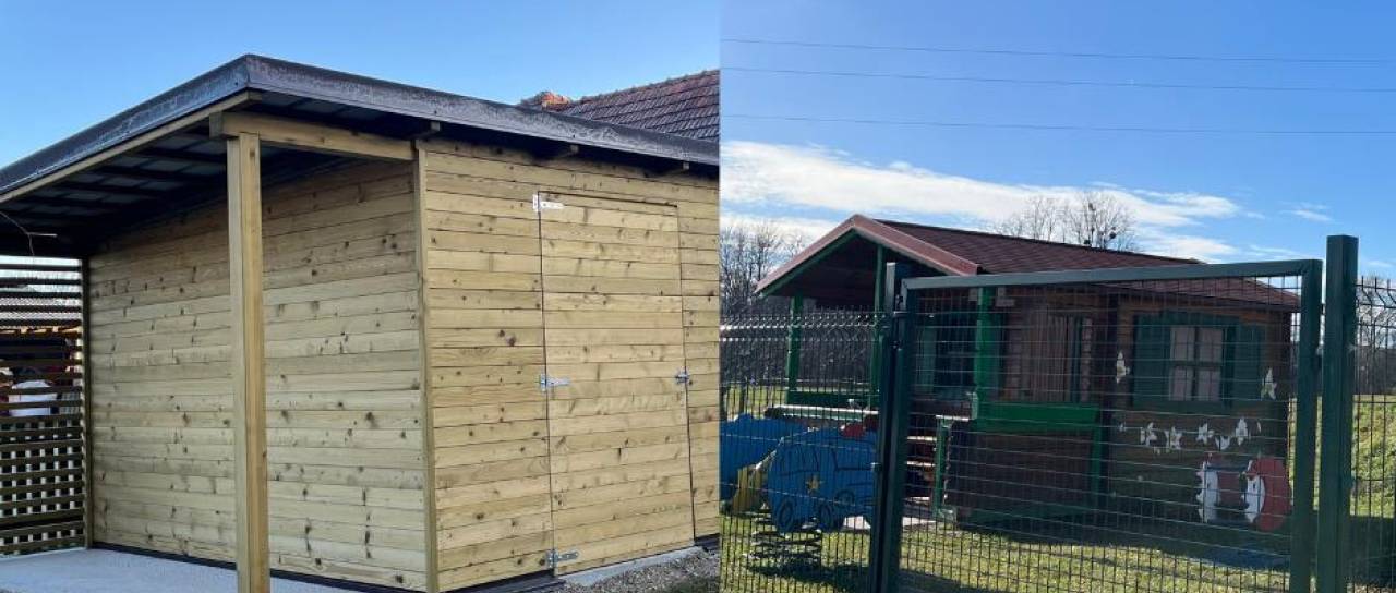 Druga naložba je bila pri Podružnični osnovni šoli Domanjševci, kjer so postavili vrtno uto, ki je namenjena shranjevanju igrač, orodja in ostalih potrebščin.
