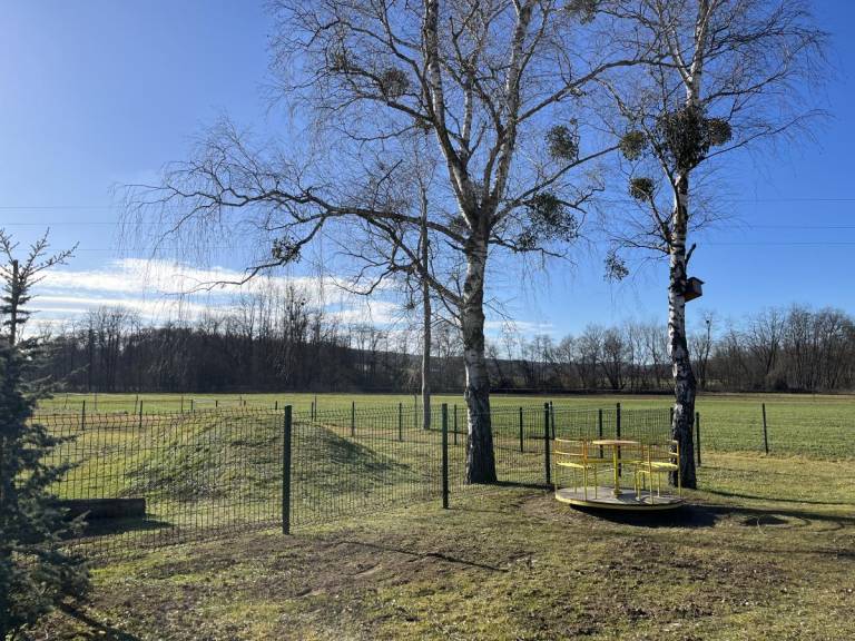 V okviru prve investicije so na šolskem dvorišču pri Osnovni šoli Šalovci postavili ogrado, ki službi potrebam vrtca.