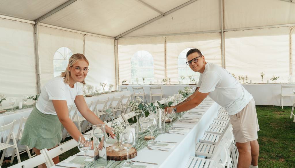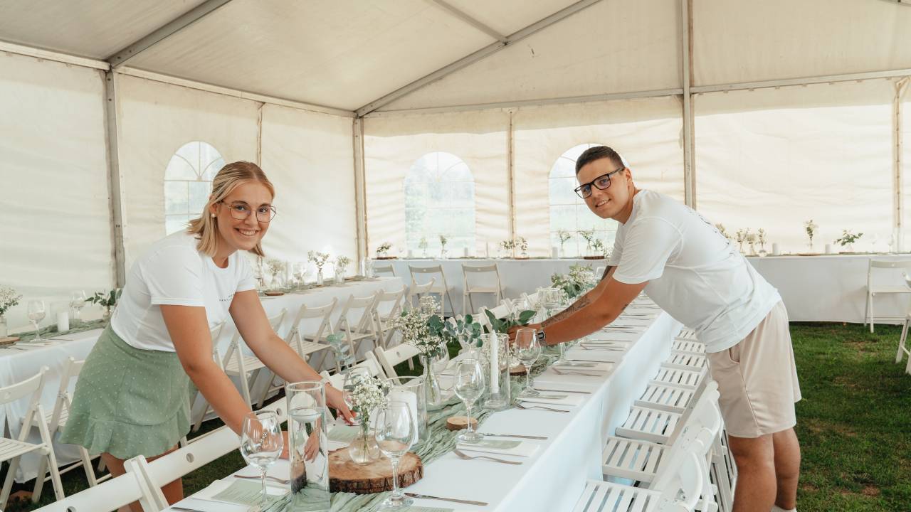 Da bi bil vsak dogodek personaliziran in edinstven, se vedno posvetita strankam in prisluhneta njihovim željam, viziji in osebnemu stilu.