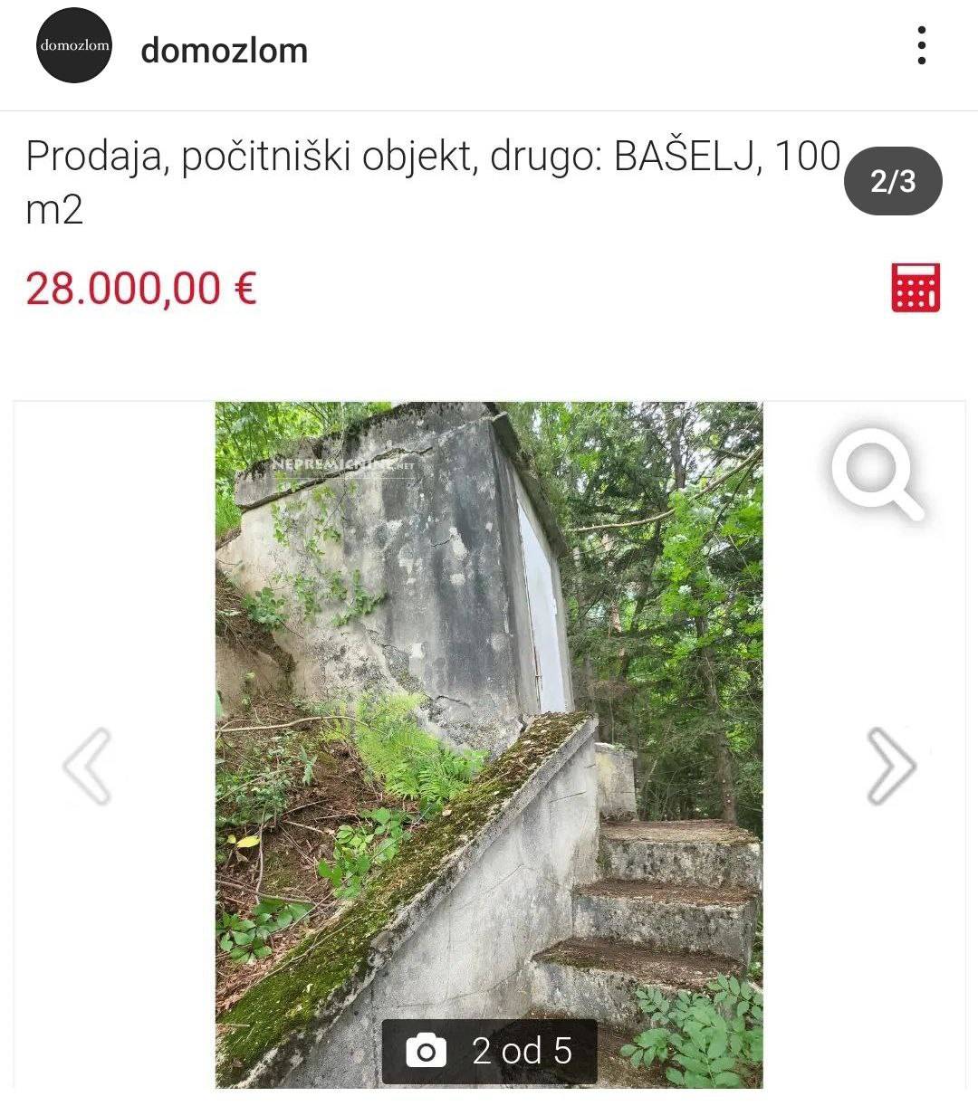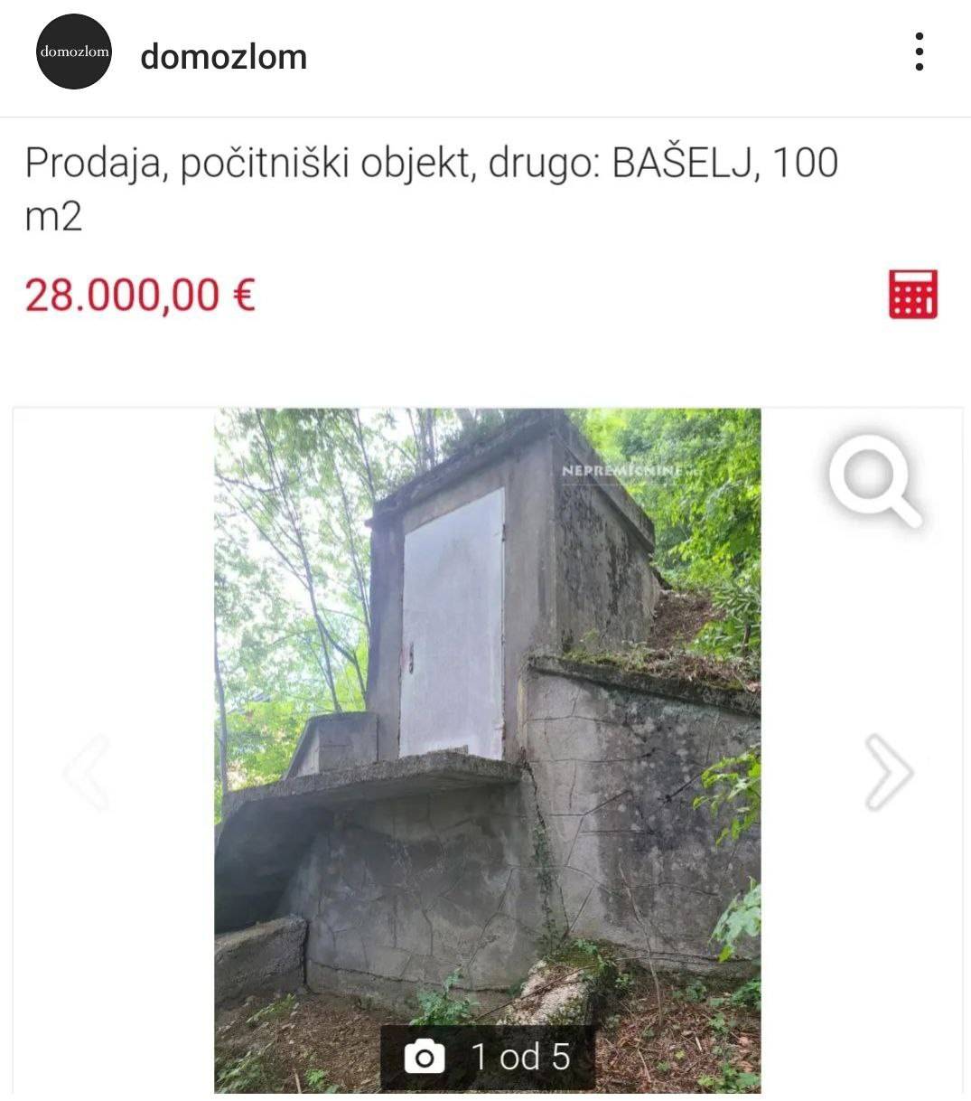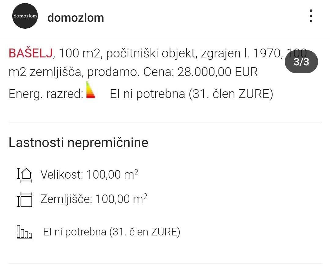 Na Instagram strani Domozlom smo opazili oglas, kjer lastnik za 28.000 evrov na strani Nepremičnine.net prodaja objekt, ki ga opisuje kot počitniški objekt.