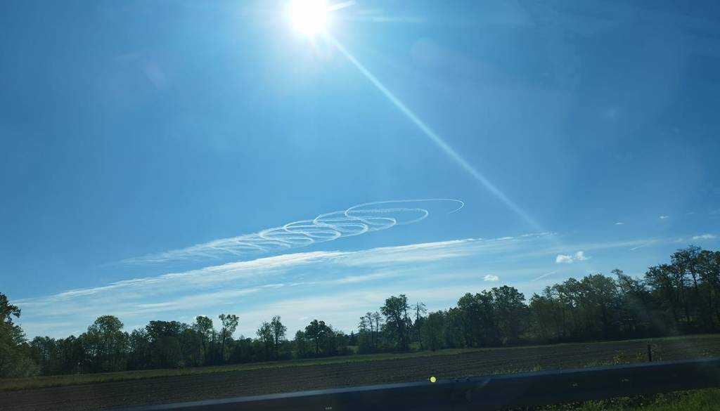 Gre za sled, ki jo pušča letalo, ki na višini 28 tisoč čevljev kroži za namene posredovanja TV signalov.