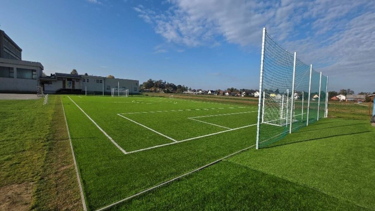 V sklopu investicije je nastalo igrišče z umetno travo, opremljeno z vsemi potrebnimi elementi - goli, mrežami ter označbami na igralni površini. Urejena je bila tudi okolica objekta, kjer je občina položila travno rušo.