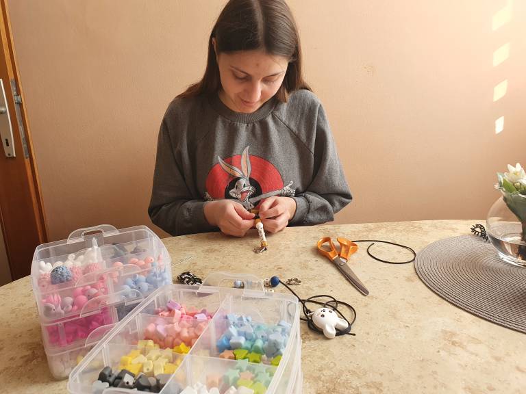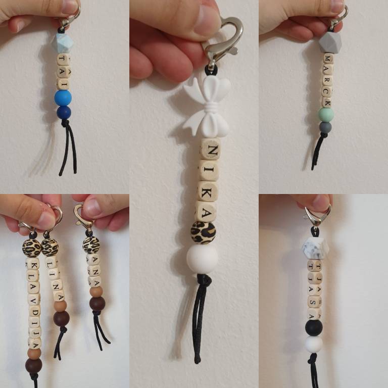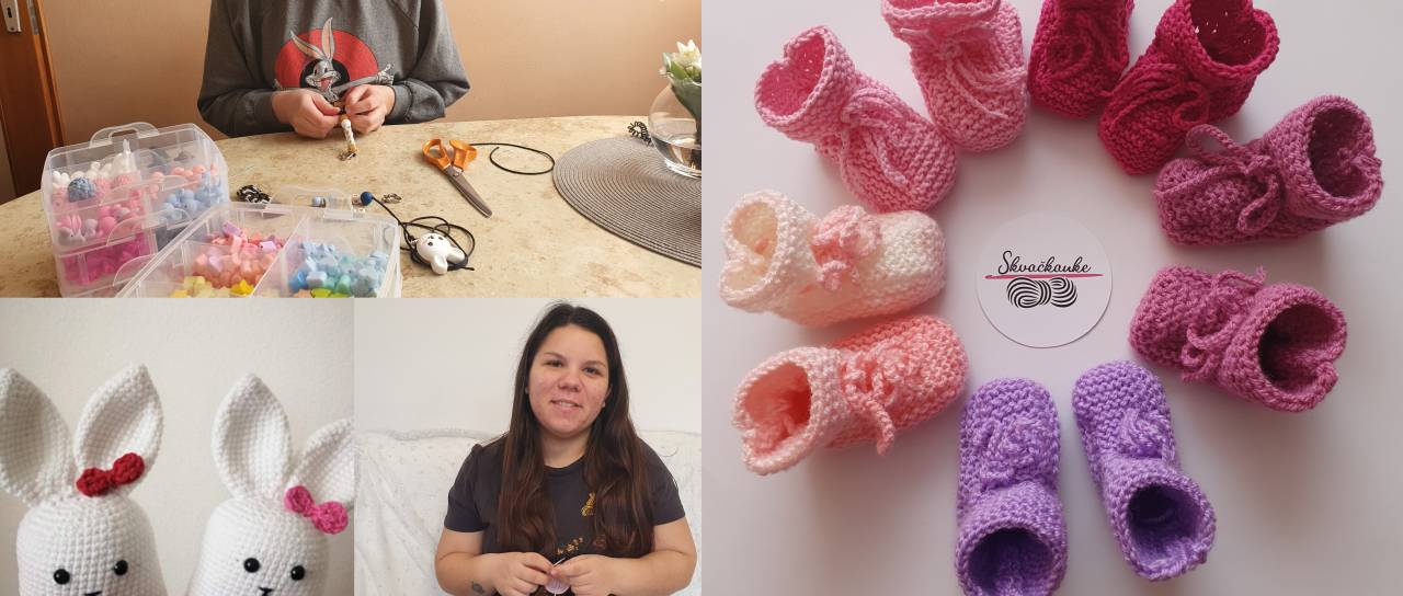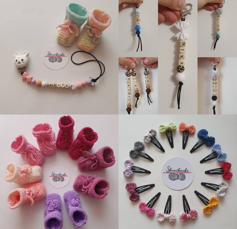 »Sanja večinoma poskrbi za naročila kvačkanih izdelkov, torej igračk, grizal, ropotuljic za otroke ter naglavnih trakov. Sama pa se posvečam izdelkom iz silikonskih kroglic, kot so obeski za ključe in torbice ter sponke z imenom za dudo.
