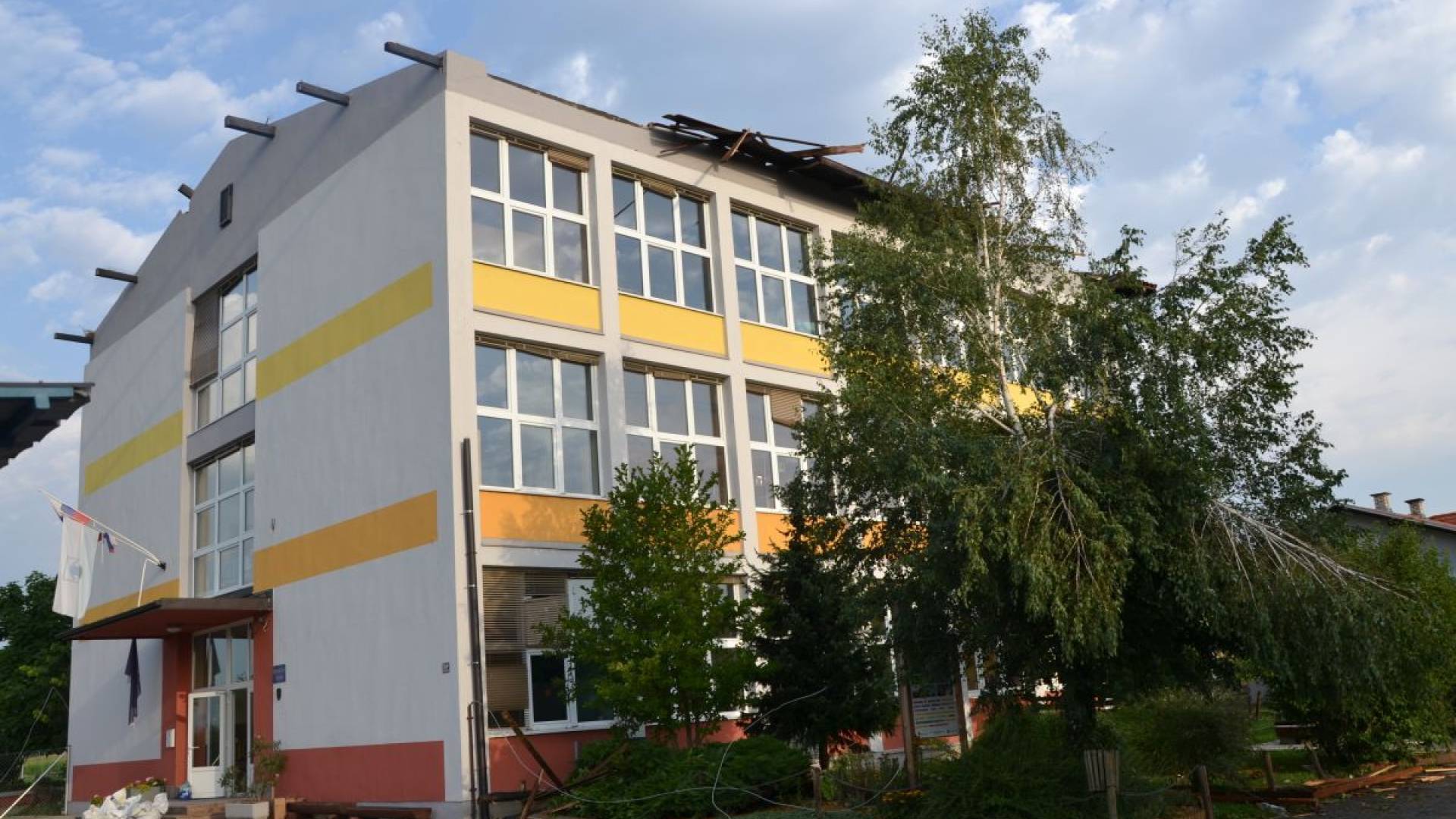 Veter je odnesel del strehe in uničil precej inventarja. Ker so sanacijska dela zelo obsežna, bo skoraj dvesto učencev v novo šolsko leto vstopilo z manjšim zamikom.
