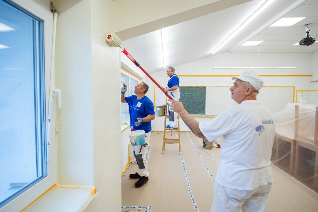 Tokrat je 135 slikopleskarjev iz šestih evropskih držav s svojimi izkušnjami in spretnostmi prispevalo k prenovi učilnic Osnovne šole Janka Modra v Dolu pri Ljubljani.