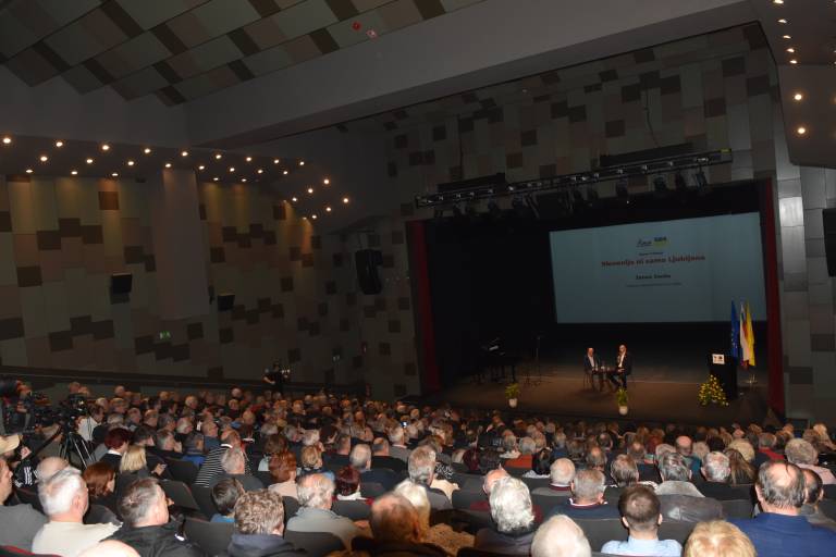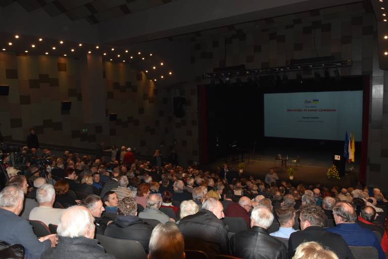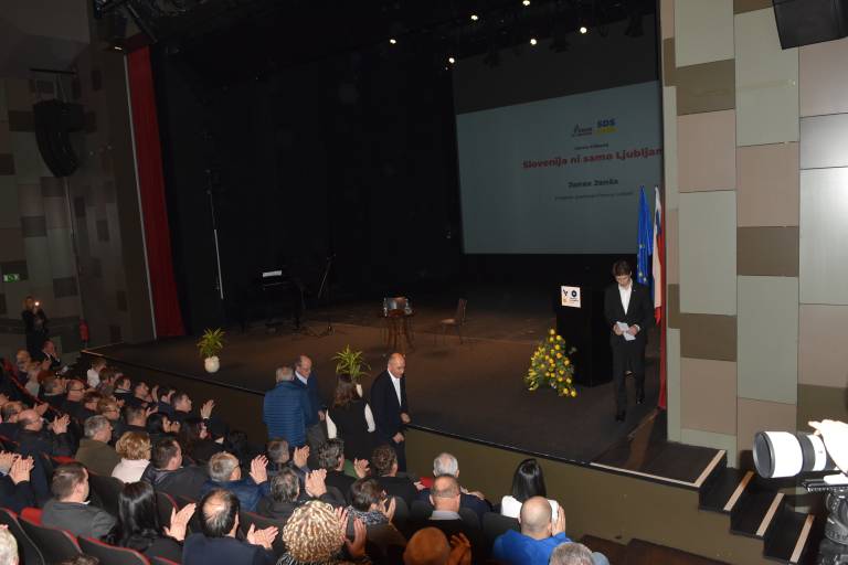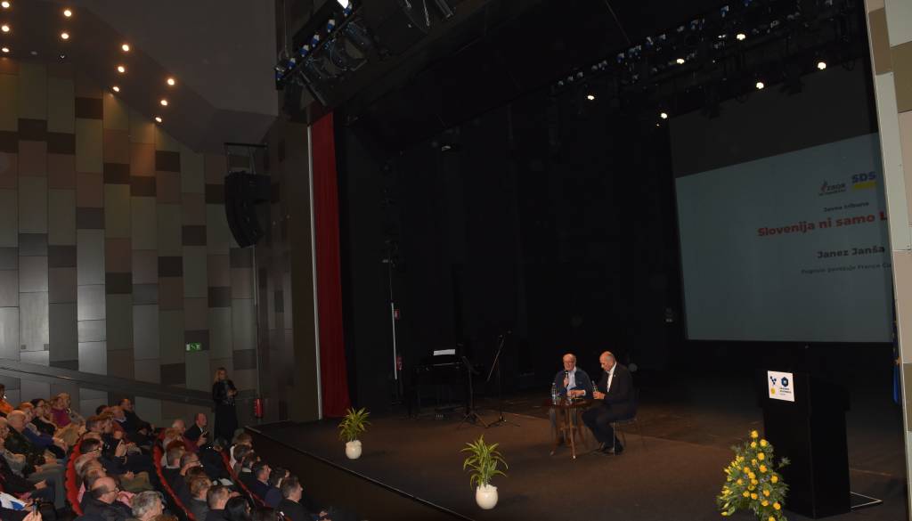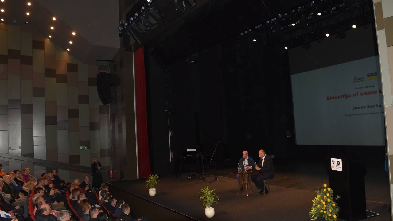 V dvorani Gledališča Park je bila danes javna tribuna z naslovom Slovenija ni samo Ljubljana, na kateri je kot gost večera nastopil predsednik Slovenske demokratske stranke Janez Janša.