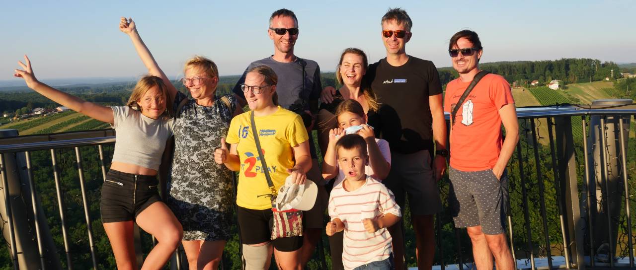 Seveda preizkušajo tudi prekmursko kulinariko, ki jih z okusi popelje skozi tradicijo okolja. Spoznavajo tudi lokalna vina, za kar so poskrbeli v Hiši vina Cuk. Polni energije pa so se ob sončnem zahodu povzpeli na Stolp Vinarium in v pogled ujeli širno pokrajino pod sabo.