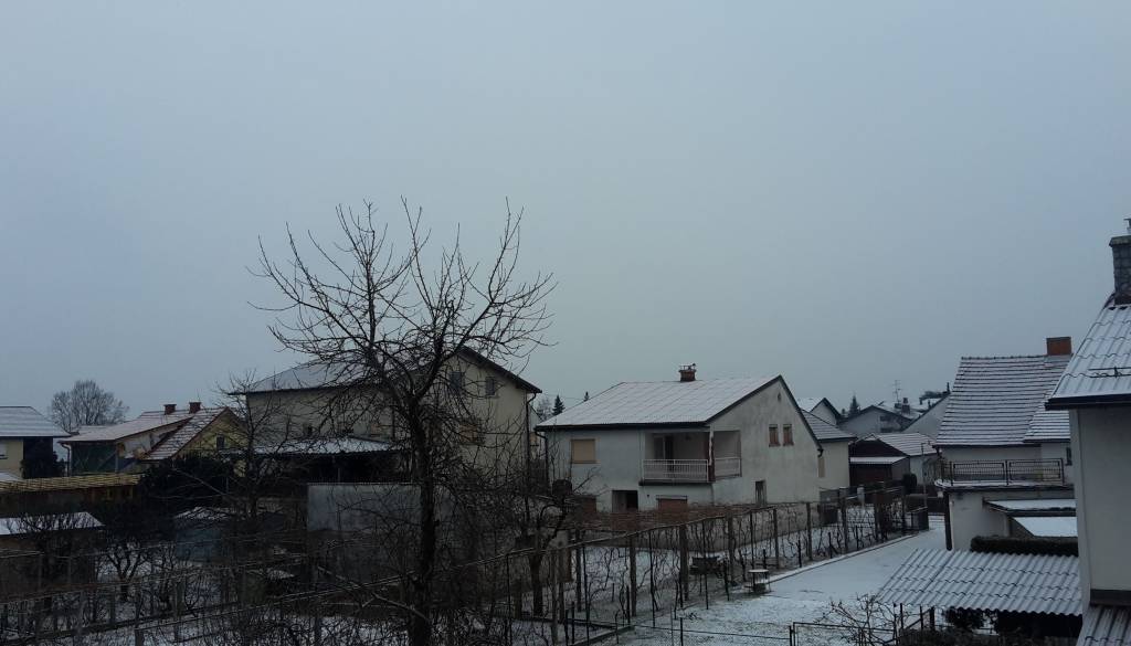 Sneg je ponoči pobelil strehe in dvorišča v Prekmurju in še vedno rahlo naletava.