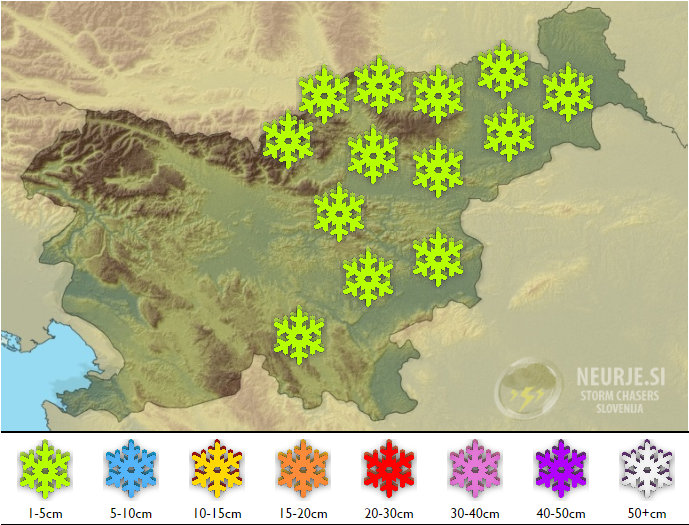 V Prekmurju na Štajerskem in na Koroškem lahko danes še občasno rahlo sneži. Zaradi nizkih temperatur in hladne podlage, lahko kljub zanemarljivi količini padavin nekaj malega snega ostane, pravi napoved.