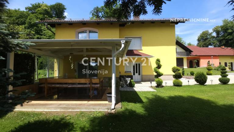 Poslovno-stanovanjski objekt ima deset sob, štiri kopalnice in veliko dvorano za prireditve.