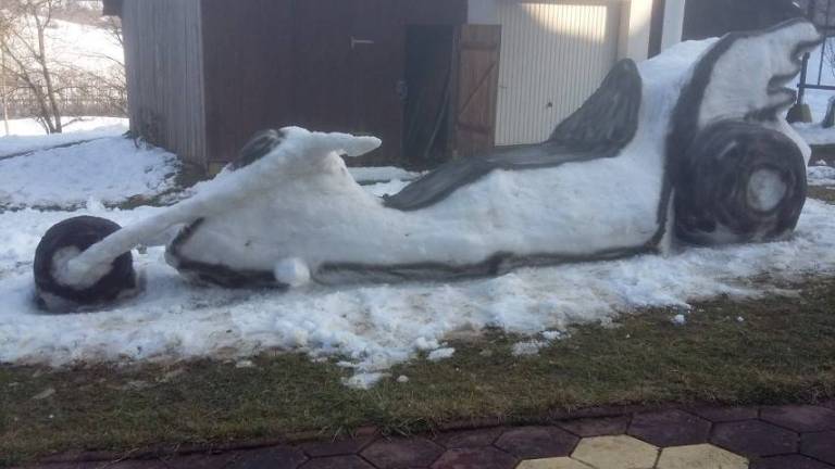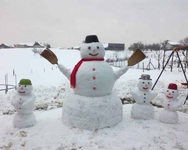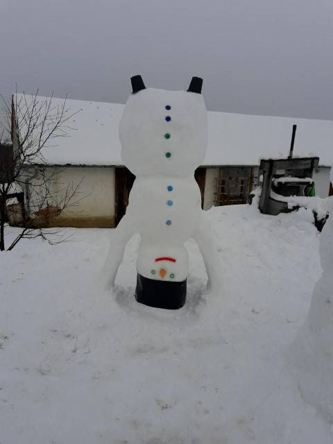 Ne le tradicionalni snežni možje – nastajali so akrobati, velikani, kosci, cele snežne družine, celo Spuži Kvadratnik, velikanski krof in dirkalnik!