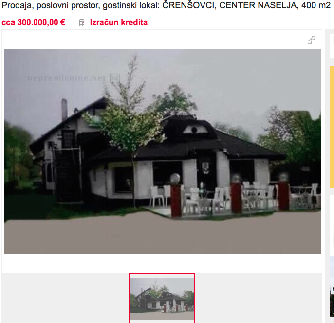V Črenšovcih v središču naselja v prodajo ali oddajo ponujajo nekdanje gostišče Beli grad s petimi spalnicami in prav toliko kopalnicami. Gre za gostinski lokal, hotel v izmeri 400 m2.