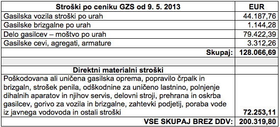 Stroški vezani na gašenje požara