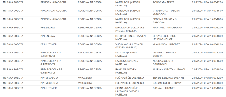 To je seznam pomurskih lokacij, na katerih bodo policisti merili hitrost: