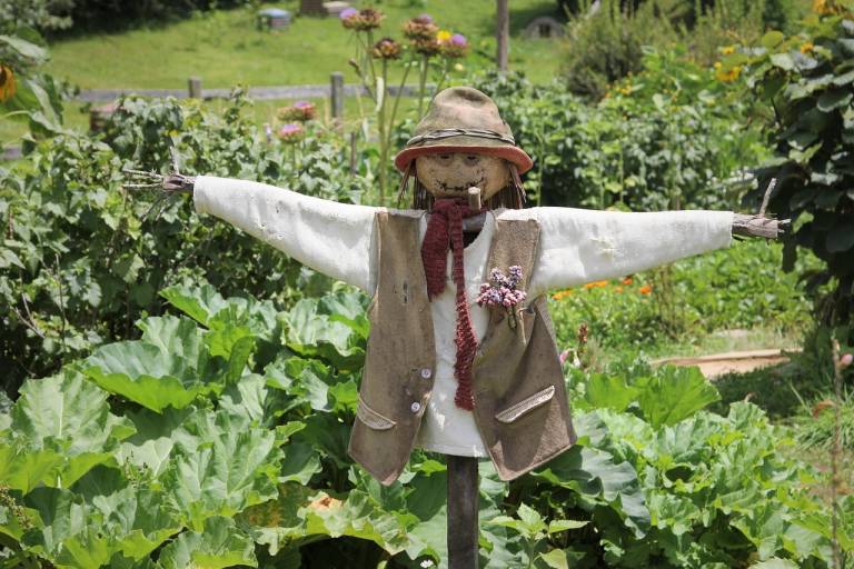 Ker se ptice sčasoma navadijo na strašilo je pametno, da ga okrasite s sijočimi venci, šumečimi magnetnimi trakovi in ropotuljami.