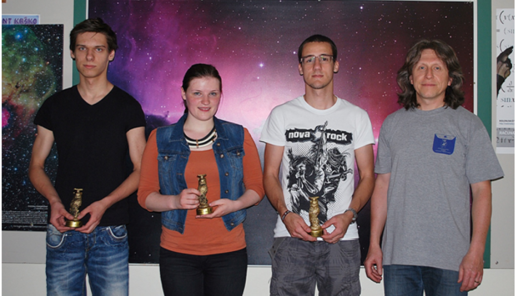 Na področju fizika in astronomija so dijaki Darko Kolar, Sandi Režonja in Iva Drvarič pod mentorstvom dr. Renata Lukača in prof. dr. Igorja Emrija z nalogo Vpliv primernega tlaka v pnevmatikah osvojili zlato priznanje.