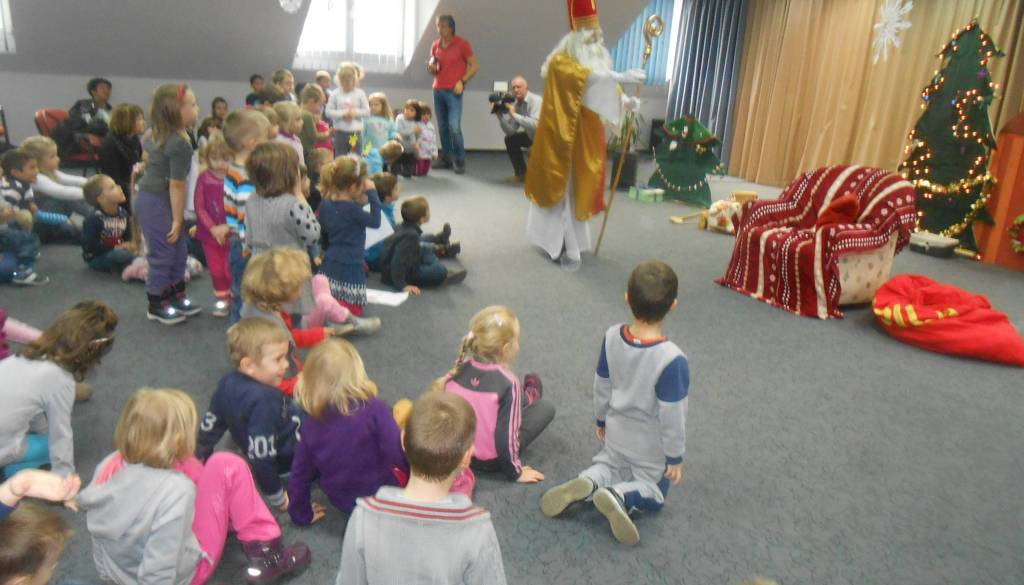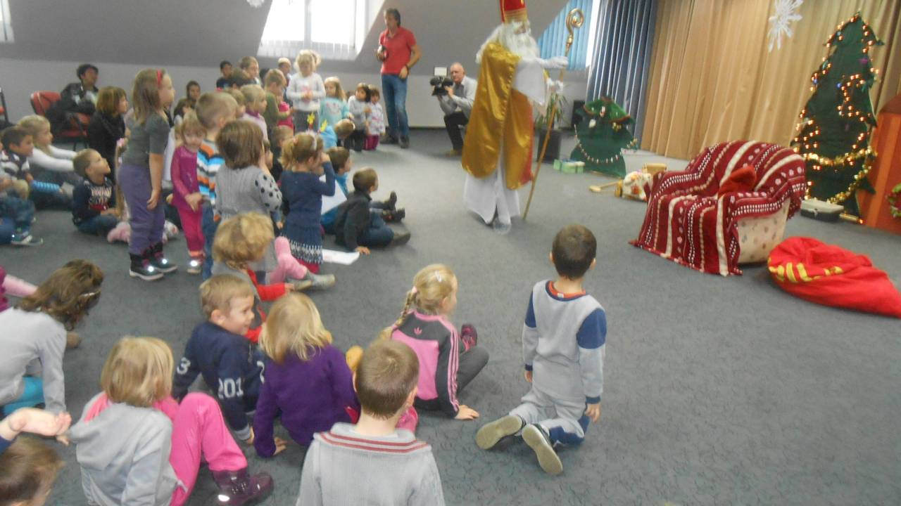 Otroke iz petih dvojezičnih vrtcev v Porabju: z Gornjega Senika, Dolnjega Senika, Sakalovcev, Števanovcev in Monoštra, je Miklavž Zveze Slovencev na Madžarskem dan pred praznikom povabil v Slovenski dom v Monoštru.