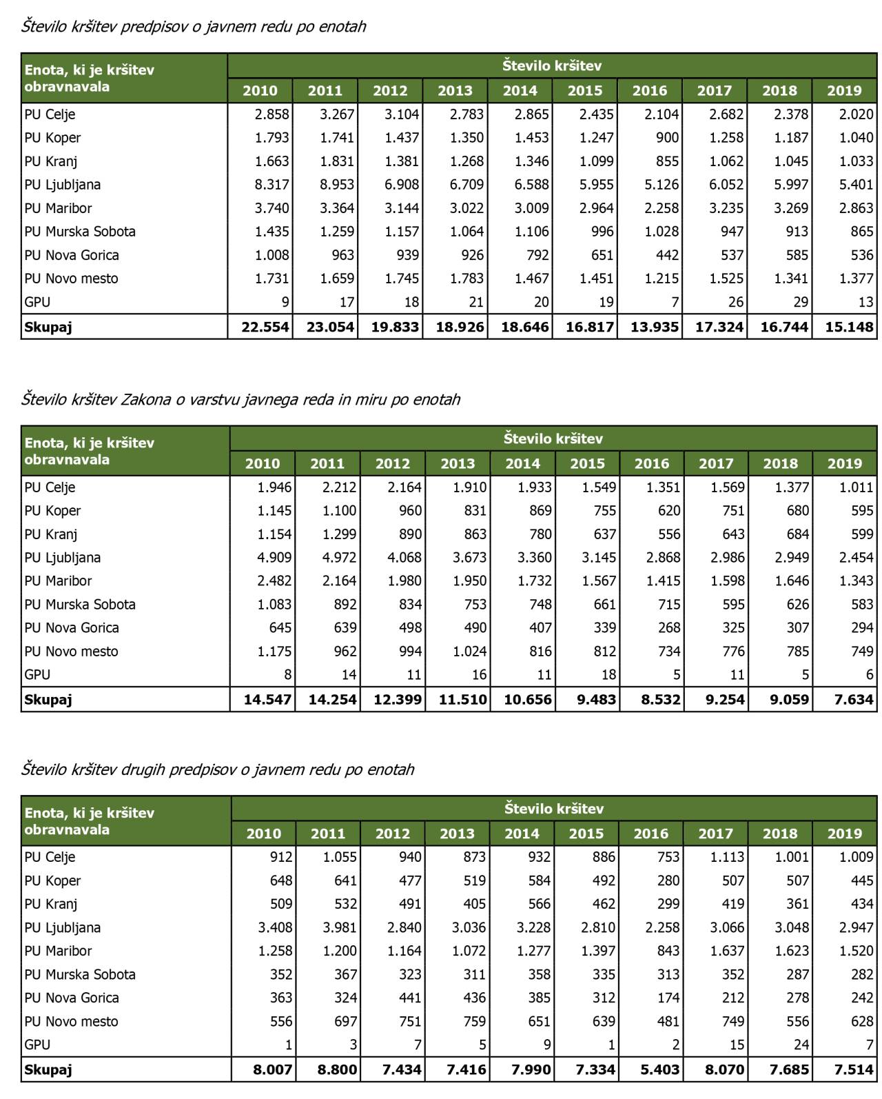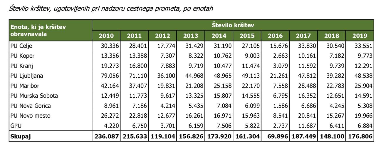 Te številke Policijsko upravo Murska Sobota na tem področju uvrščajo na predzadnje mesto, manj kršitev so obravnavali le policisti iz policijske uprava Nova Gorica. Trend zadnjih devet let sicer kaže, da so navedene kršitve bolj ali manj v upadanju na ravni celotne države.