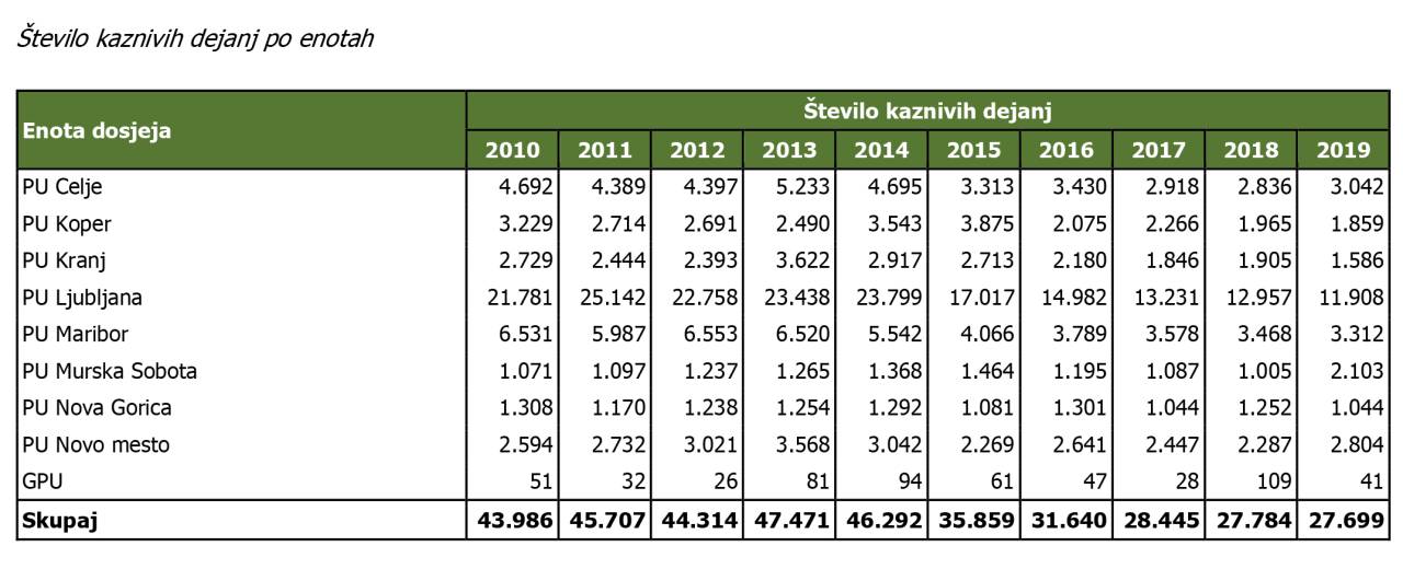 Na območju policijske uprave Murska Sobota glede na podatke iz leta 2018 spadamo sicer v najvišjo kategorijo pri obremenjenosti s kaznivimi dejanji zoper življenje in telo, saj je teh v lanskem letu bilo 107 na 100.000 prebivalcev.