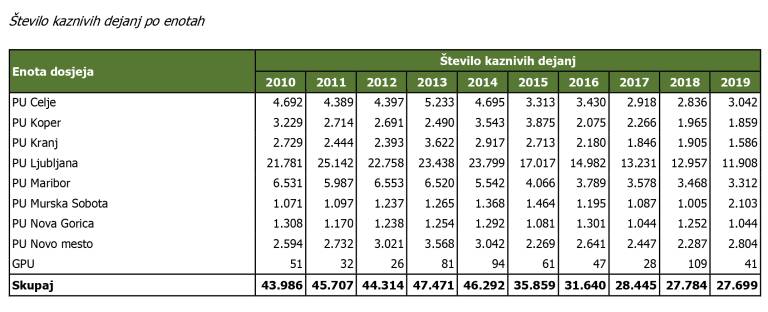 Število kaznivih dejanj v prvem polletju 2019 je za enkrat večje, saj znaša kar 2.103 (v lanskem obdobju 1.005). Policijska uprava MS je v prvem polletju letošnjega leta zabeležila večje število kaznivih dejanj, kot PU Koper (1.859), PU Kranj (1.586) in PU Nova Gorica (1.044).