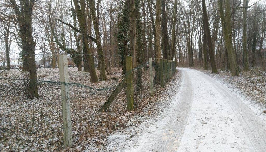 Na sliki je dobro vidno, da je ograja, predvsem na južnem delu z strani parka in Fazanerije, že precej dotrajana in na več mestih poškodovana. Zato so se odločili, da bodo ograjo obnovili. Zamenjati nameravajo kar 220 metrov ograje.