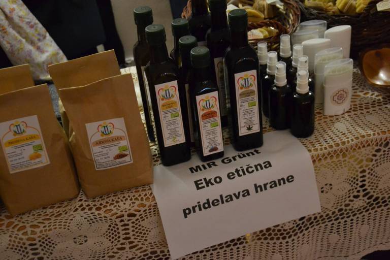 Na tržnici ponujajo odlična naravna olja (bučno, sončnično, olje oljne ogrščice, ričkovo, konopljino in laneno olje) ter ogromno izbiro izdelkov iz ekološko pridelanih žit (razne vrste mok, zdrob) ter ajdovo kašo, laneno seme in pšenične kalčke.