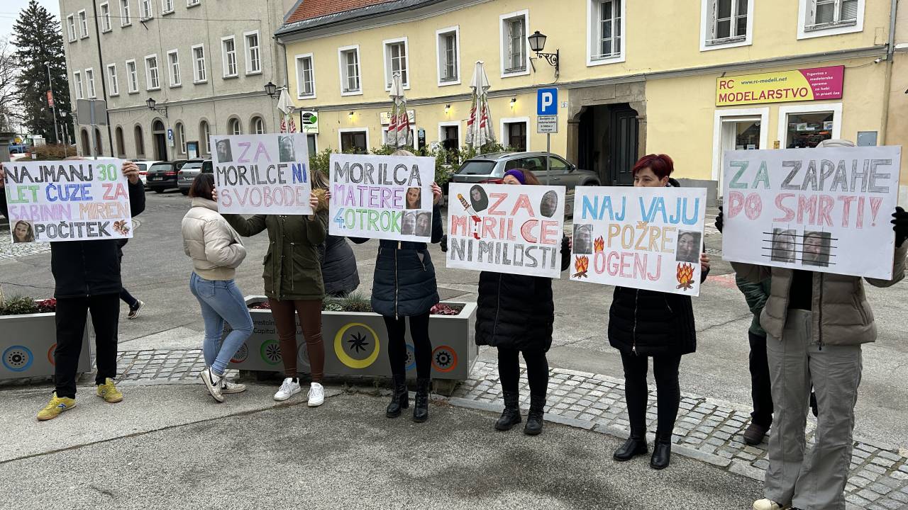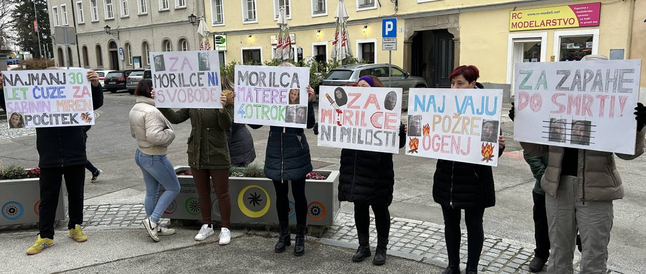 Svojci in znanci umorjene matere štirih otrok so na začetek predobravnavnega naroka za Tomaža Arkliniča čakali s transparenti.