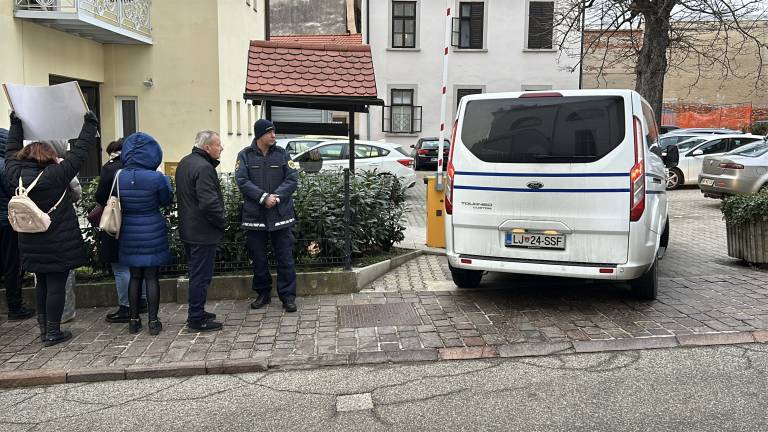 Dogajanje pred sodiščem so spremljali tudi policisti. Ko je do zadnjega vhoda na sodišče pripeljalo vozilo pravosodne policije, je postalo glasno.