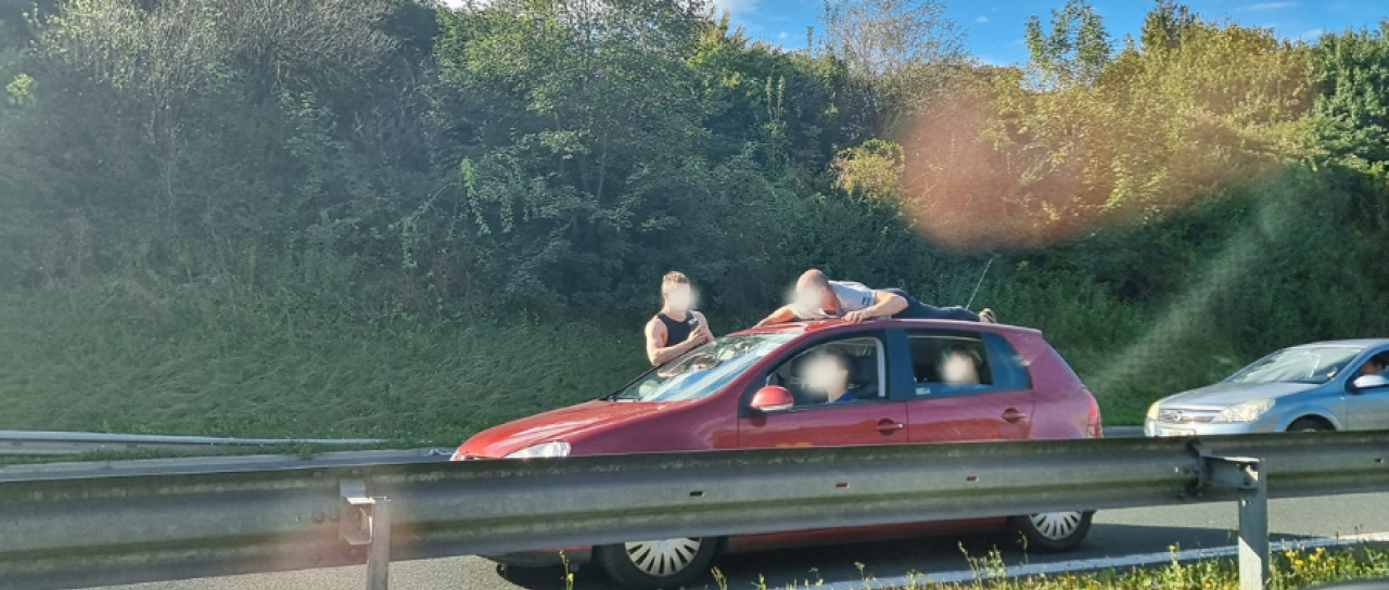 Šokantni posnetki: Na slovenskih cestah mladenič na strehi avtomobila