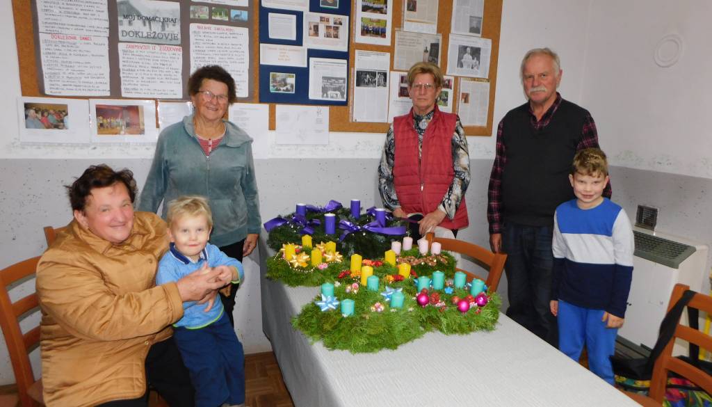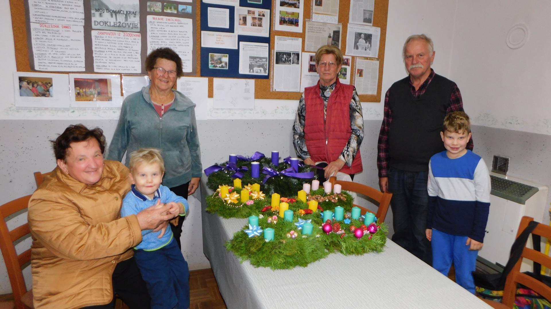 Skupaj so na delavnici v spodnjih prostorih Vaškega doma v Dokležovju spletli 26 manjših adventnih venčkov in večji adventi venec, ki krasi župnijsko cerkev svetega Štefana v Dokležovju.