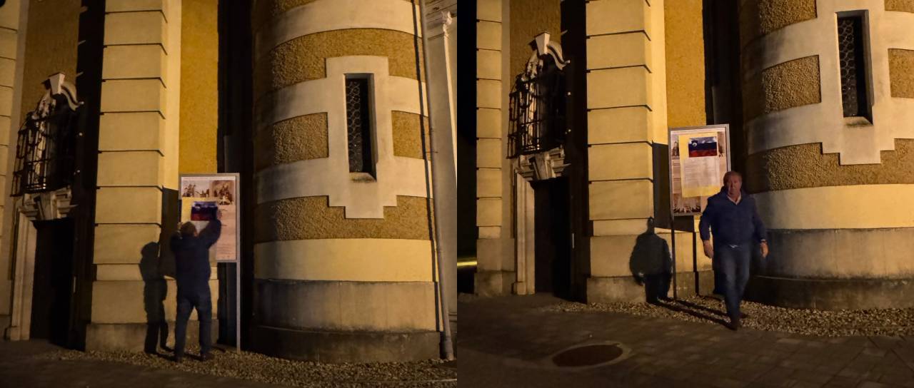 Sporno tablo pred cerkvijo v Beltincih je prelepil nekdanji državni svetnik Marjan Maučec, ob tem pa je naslovil tudi pismo na ministra za notranje zadeve in nekdanjega murskosoboškega škofa.