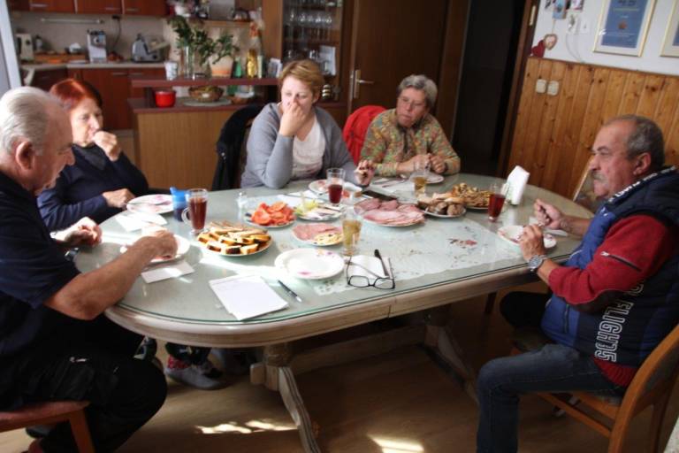 Oba sta letos obeležila jubilej, sedaj pa sta to tudi uradno ovekovečila. Po opravljenih čestitkah in izročitvi priložnostnih daril smo bili povabljeni za obloženo mizo, za kar je poskrbela njuna hčerka Tatjana Petek.