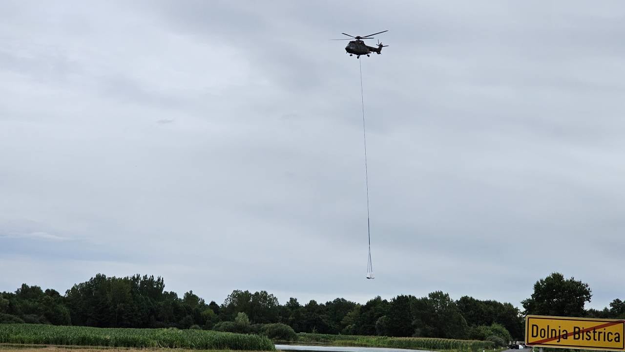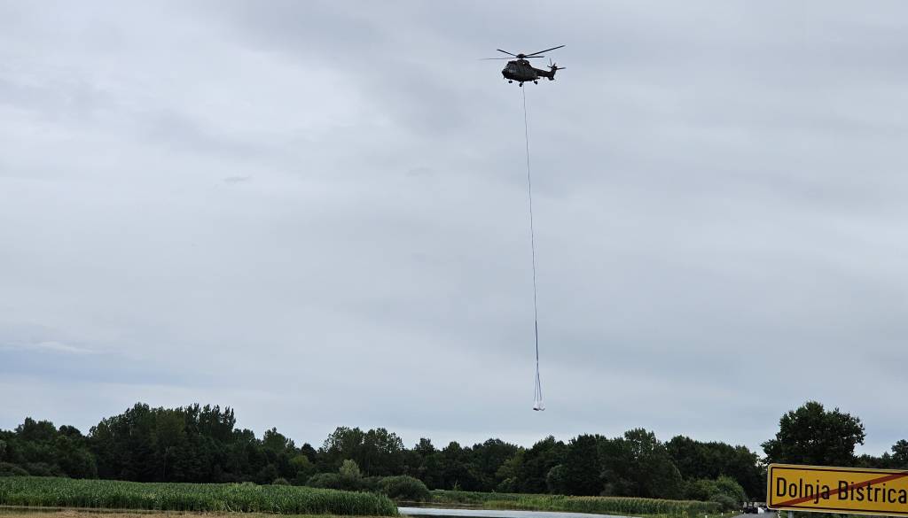 Helikopter ponovno na Dolnji Bistrici, nasip začelo spodjedati