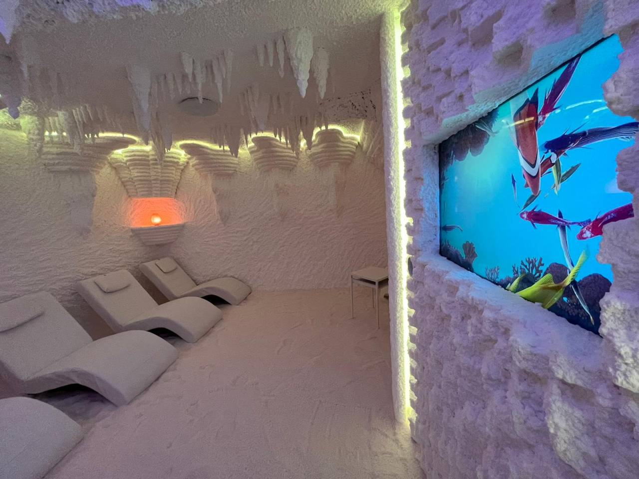 V izbranem ambientu solnih kapnikov, himalajskih lučk, barvne terapije in z vdihovanjem solnega aerosola boste z obiskom solne terapije dosegli enak blagodejni učinek, kot da bi preživljali dan ali dva na morju.