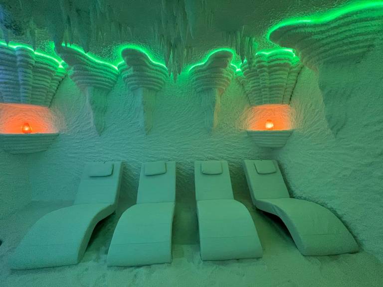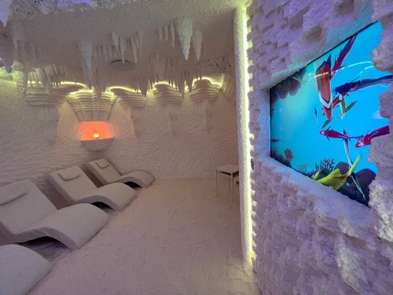 Pričakujejo vas tudi v solni jami, ki čisti in razkužuje dihalne poti in kožo po naravni poti ter dviguje naravno imunost. Poleg terapevtskega učinka v solni jami doživite popolno umiritev in sprostitev telesa ter duha in s tem poskrbite za svoje duševno zdravje.
